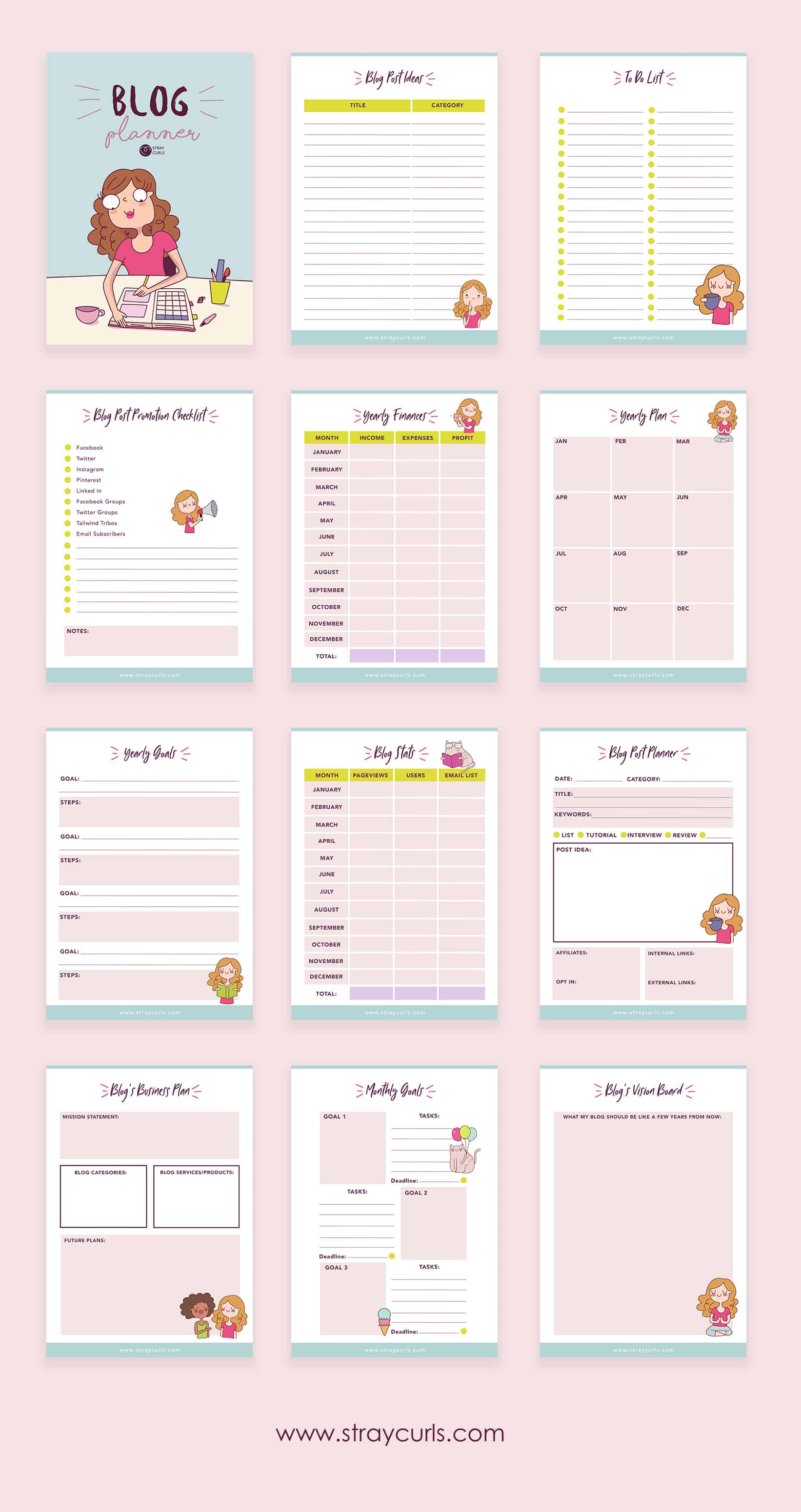 This free printable blog planner is not only super cute with little girl and cat stickers but is also super functional! Stay super organised and keep track of all your blogging goals by downloading this 12 page blog planner! #blogplanner #plannerlife #planner #girlboss #free #freeprintable #blogging
