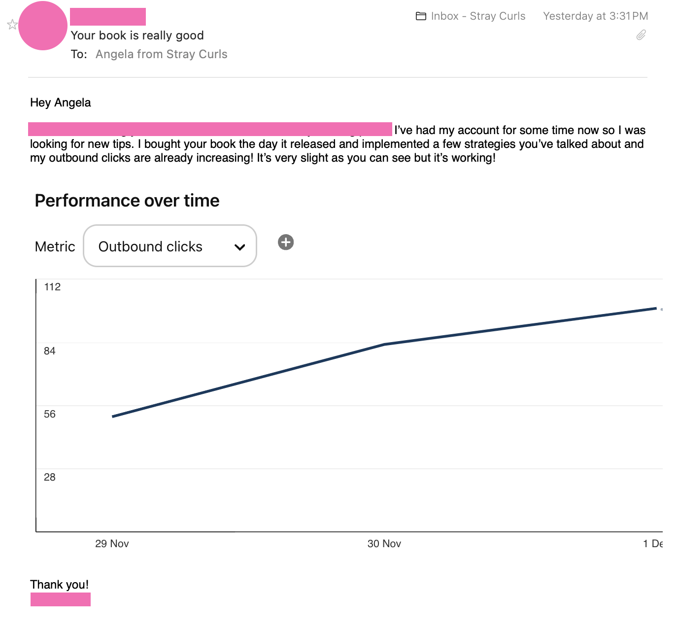 And then slowly, I noticed that it had 100 outbound clicks, which soon turned to thousands!